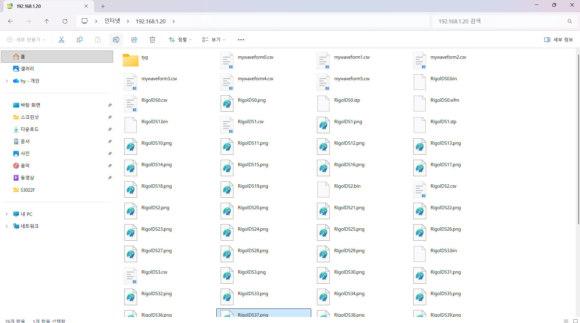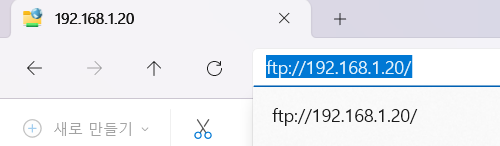 FTP 설정방법은 매우 간단합니다. 오실로스코프 주소를 ftp로 (예: ftp://192.168.1.20)로 변경합니다. 그 후 파일관리자 주소창에 입력하면 오실로스코프 내장된 디스크에 접속할 수 있습니다.