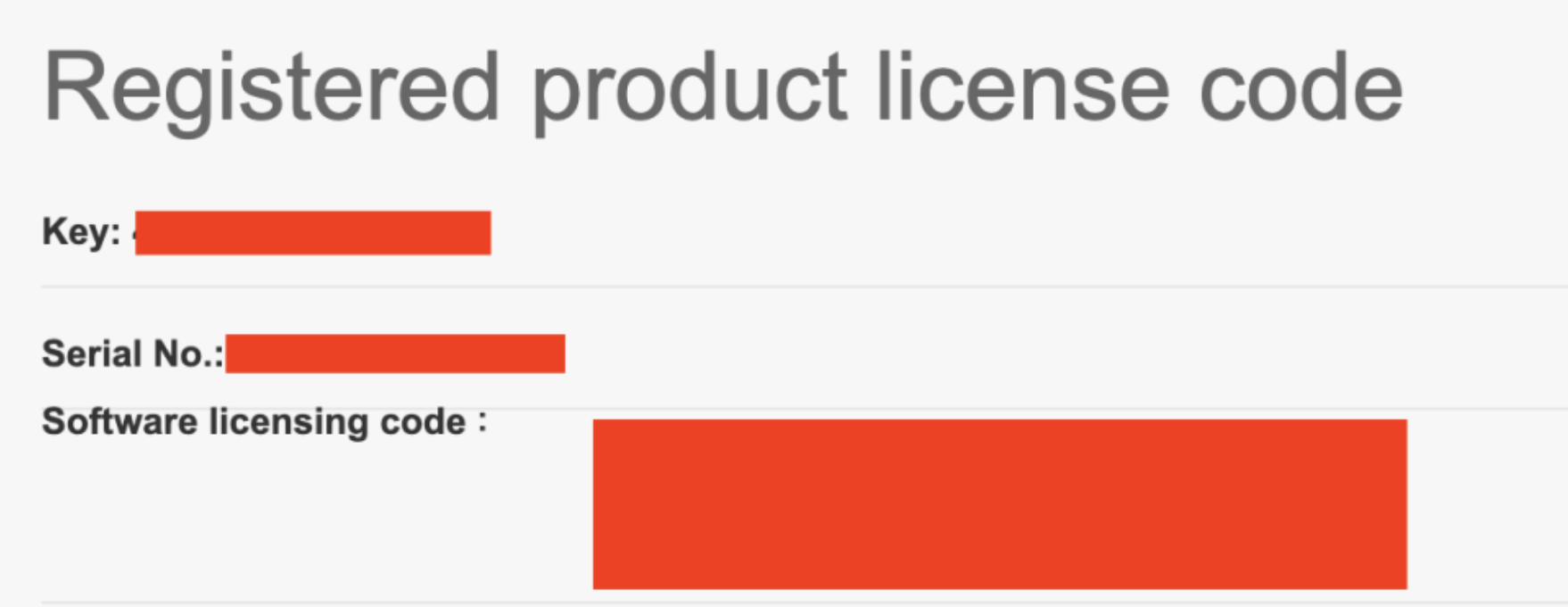 코드 복사: 생성된 소프트웨어 라이선스 코드(Software License Code)를 복사합니다.